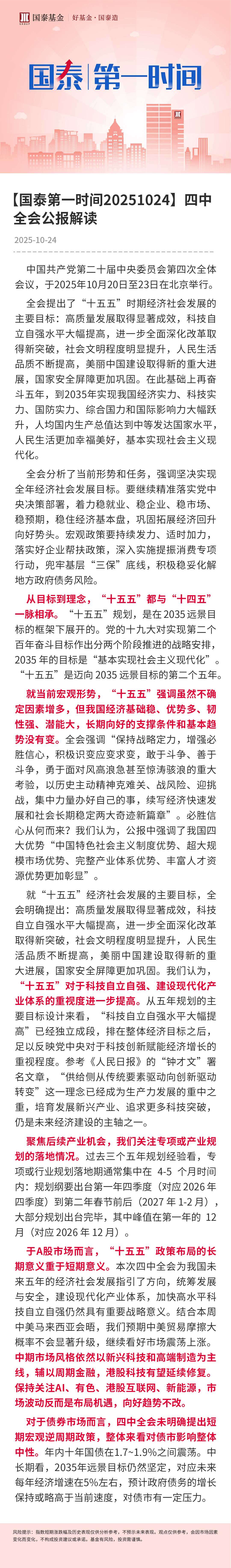 【国泰第一时间20251024】四中全会公报解读