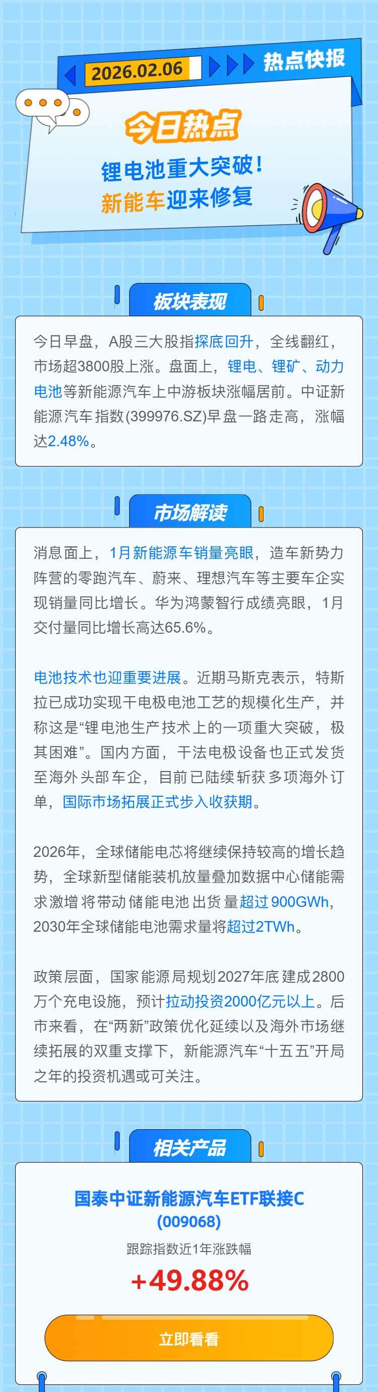 【热点快报】锂电池重大突破! 新能车迎来修复