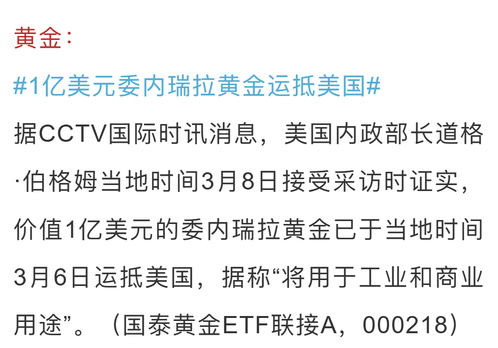 【国泰早安03/10】1亿美元委内瑞拉黄金运抵美国